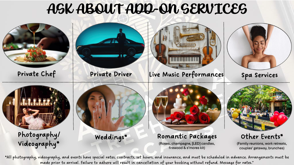 To make your visit even more memorable, a variety of optional services can be arranged during your stay. Guests may request massage services, catering, professional photography or videography, or entertainment such as DJ services or live music performances. Atlanta is known for its vibrant music culture, and we can help coordinate musicians such as saxophonists and other performers to create the perfect atmosphere for your gathering or celebration. Whether you’re planning a relaxing retreat, special event, or unforgettable weekend, these add-on services help customize your experience beyond the stay itself.